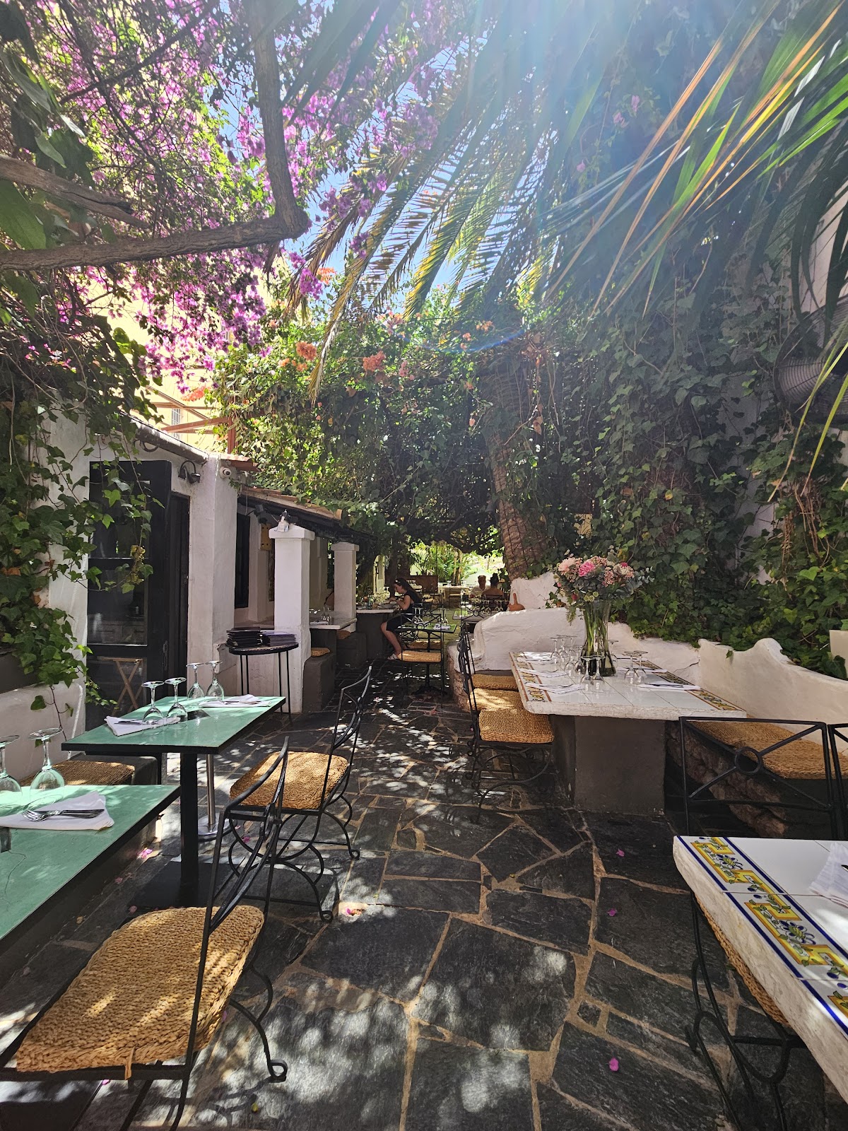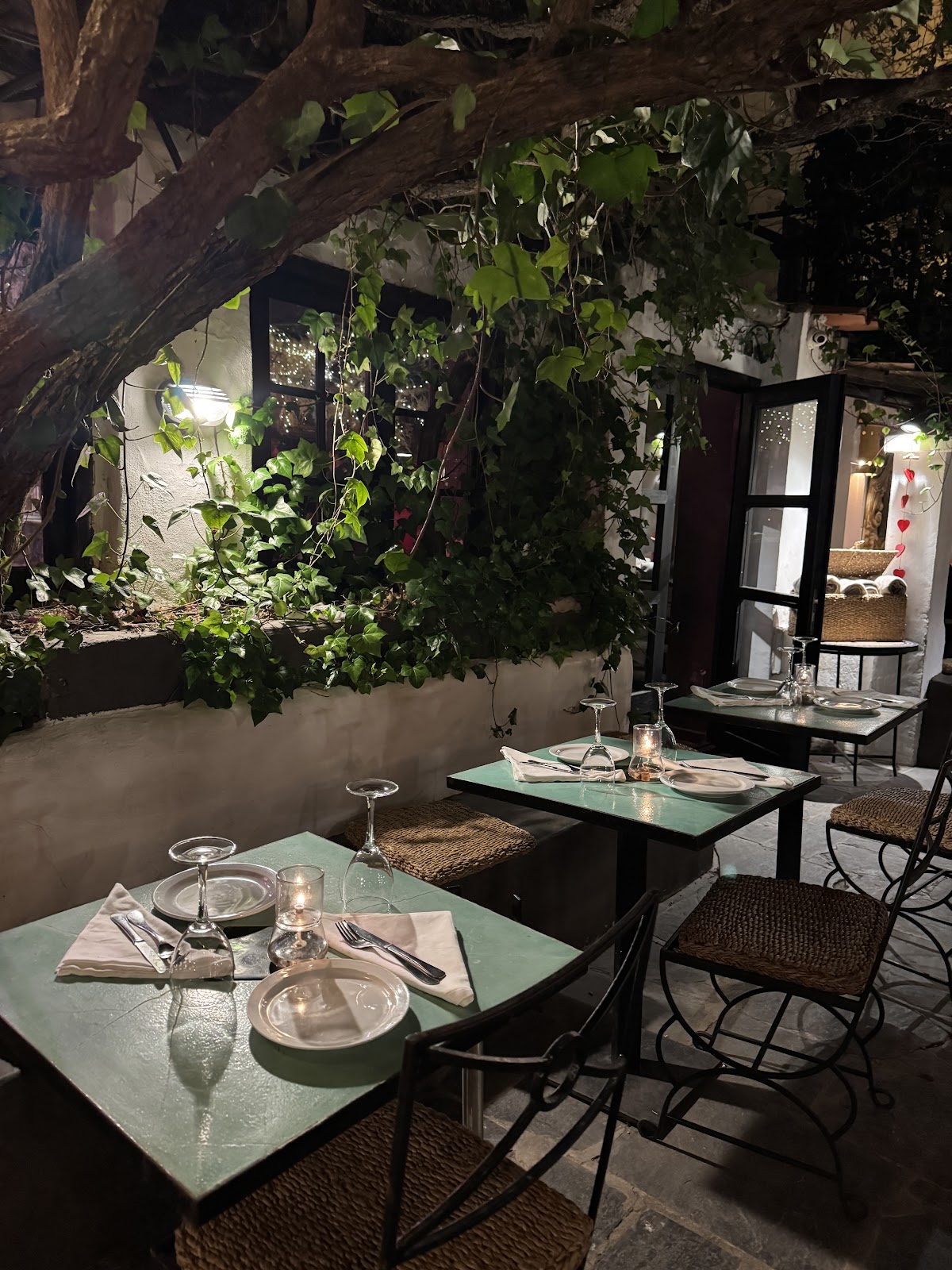 La Brasa is a garden restaurant and grill in Ibiza Town, set beneath tall trees in a beautiful courtyard. The charcoal grill produces excellent steaks and fresh fish, and the romantic garden setting — with its stone walls and fairy lights — makes it one of the most atmospheric dinner spots in the old town.